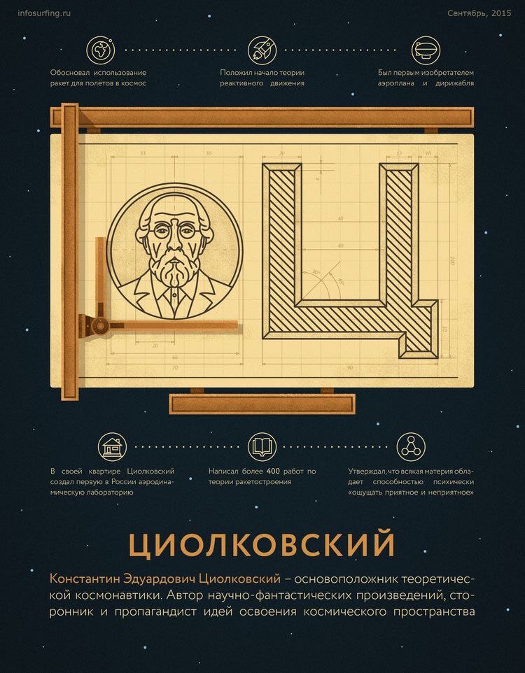 — Не знаю. Вот сколько лет работаю, сколько лет изучаю – ответа нет. Он же в Москве, когда уехал из дома в 16 лет учиться, без денег, без связей, он уже тогда писал, что мысль о сообщении с мировым пространством не оставляла его никогда. Идея о полете в космос пришла к нему независимо от Федорова и не оставляла его никогда. Семья, бедность, глухота – и космос! И вот этот контраст с годами становился все сильнее. Эта тяжесть земная — и глобальные космические идеи.