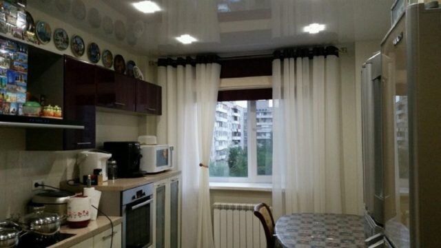 Шторы на люверсах в интерьере кухни