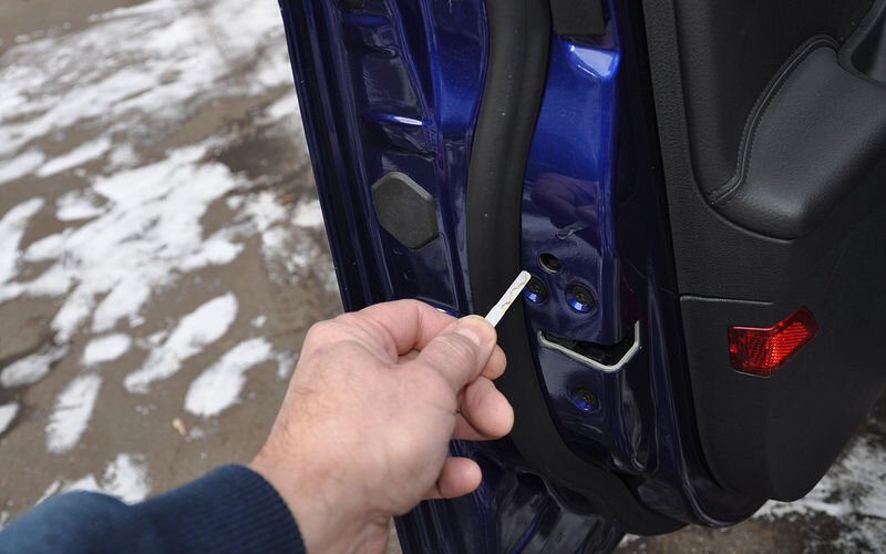 Как бы ни была дорога и престижна машина, но при определенных обстоятельствах у неё может разрядиться аккумулятор, и тогда никакой «бесключевой доступ» не позволит просто запереть автомобиль. «За рулем» поможет и в этой «безвыходной» ситуации. Аккумулятор может разрядиться в самых разных случаях, которые мы сейчас рассматривать не будем, но, заметим, что зимой это случается довольно часто. Итак, вы открыли тем или иным способом автомобиль, пооткрывали все двери, а как теперь без электричества, все это запереть? Проще всего с автомобилями, имеющими японо-корейские корни. У них практически всегда над внутренней ручкой открывания двери присутствует перекидная клавиша, ведающая блокировкой и разблокировкой замка данной двери. Достаточно нажать на такую клавишу и захлопнуть дверь. У многих европейских машин имеются кнопки, расположенные в верхней части обивки двери. Тут тоже все просто. Эти кнопки, как и клавиши в японо-корейском исполнении позволяют закрыть всю машину без ключей и без а