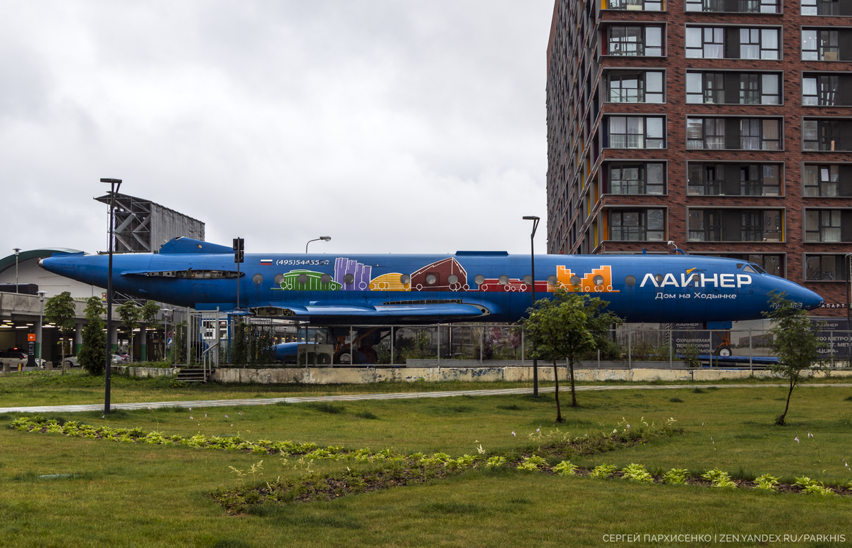 В 2014 году на территории Ходынского поля началось строительство ЖК "Лайнер". В декабре того же года борт 65694 был расстыкован и вывезен из "Домодедово". Самолёт установили неподалёку от пересечения улицы Авиаконструктора Микояна и проезда Берёзовой рощи. В 2015 году в салоне открылся офис продаж квартир будущего ЖК. При этом как сообщал сам застройщик кабину самолёта оставили без изменений.