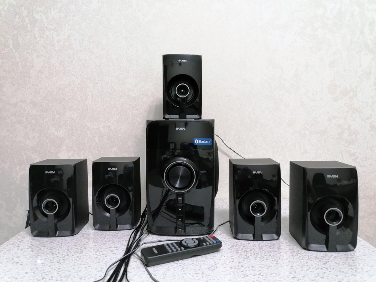 В этом случае придётся смотреть на отдельную акустику, которую можно подключить к доступному нам источнику звука с красивой картинкой. Сегодня на рынке есть разные решения, и мы тестируем одно из них — SVEN HT-202. Это аудиосистема формата 5.1.