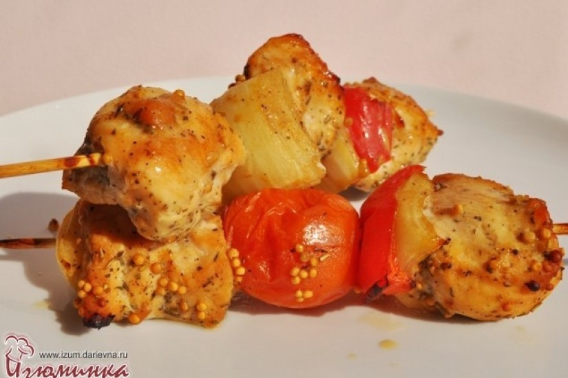 Куриный шашлык в духовке - это так просто, что не готовить его хотя бы иногда - почти преступление! Рецепт куриного шашлыка в духовке прост до безобразия, процесс приготовления абсолютно не трудозатратный, но результат - неизменно отличный. Совсем немного усилий, пять минут - и в итоге на столе вполне достойное угощение, на приготовление которого потратится совсем мало времени и сил. Как приготовить куриный шашлык в духовке? Ингредиенты: 2 куриные грудки; 2 болгарских перца; 1 головка репчатого лука; 5-6 маленьких помидорок; 2 ст. л. меда; 1 ст. л. горчицы в зернах; 1 ч. л. сухих трав по вкусу; 1 ст. л. соевого соуса; соль, перец по вкусу. Инструкция Подробный пошаговый рецепт с фотографиями можно посмотреть на сайте в заметке "Куриный шашлык в духовке ". Другие интересные рецепты на второе можно найти в разделе "Рецепты на второе". Подписывайтесь на наш канал, чтобы читать новые заметки. Если вам понравился этот рецепт - ставьте лайк, чтобы видеть больше наших заметок в своей ленте
