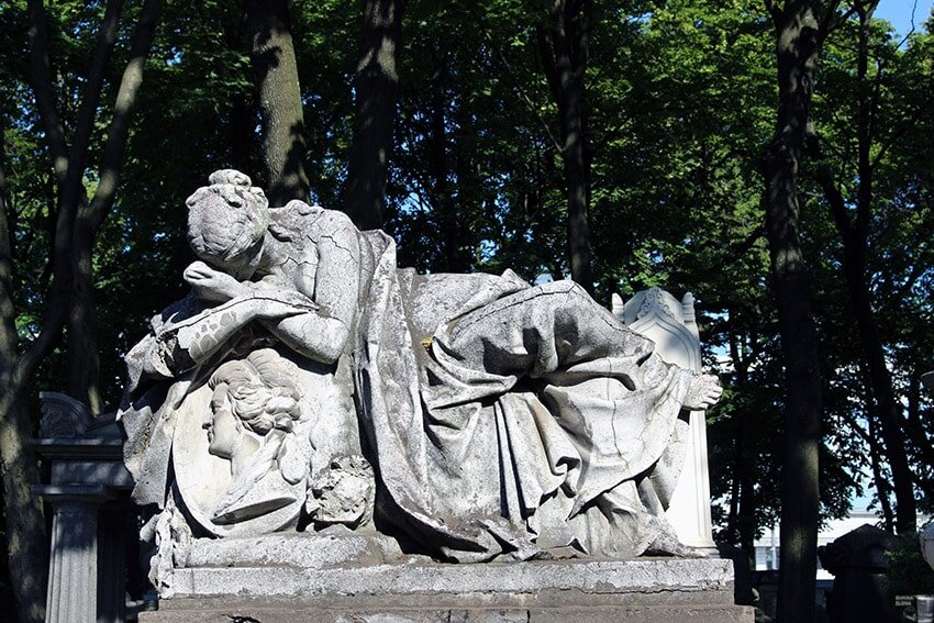 Романтичный образ спящего мужчины на одном из надгробий. Он словно на мгновение прилег отдохнуть, но с тех пор прошла уже целая вечность.