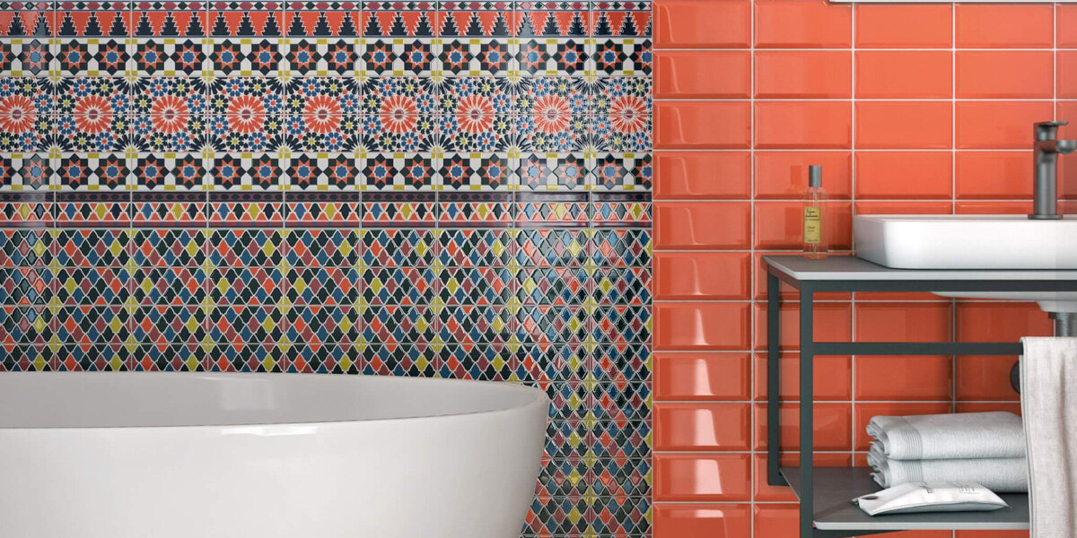 Сделать ванную комнату или кухню жизнерадостной поможет яркий декор из серии «Алькасар» от KERAMA MARAZZI. Мавританские узоры насытили интерьер контрастными сочетаниями и необычными орнаментами, которые при сплошной укладке соединились в восхитительный «ковер». Его этнический стиль — не более чем краска в богатой палитре выразительных средств, делающих обстановку индивидуальной. Практически весь «фартук» выполнен плиткой «метро». Этот универсальный, исключительно удобный мини-формат позволил добавить к пестрым дизайнам однотонную плитку «Клемансо». Она выделяется на полосе фартука эффектным оранжевым поясом благодаря блестящей гладкой поверхности с аккуратной фаской. Также стоит обратить внимание на тонкий бордюр, уложенный двумя полосами. Их «расшитая тесьма», без сомнения, вносит свой колорит в цветовую гамму композиции. Керамические декоры из «Испанской фиесты» принесут в каждый дом настроение яркого самобытного праздника. Важно, что этот праздник в любом случае станет отражением ха