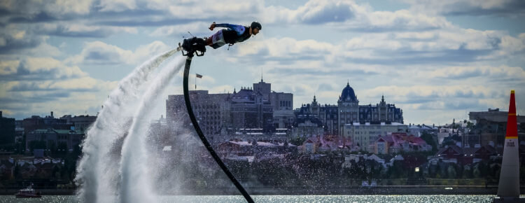 С помощью флайборда можно взлетать выше пятиэтажного дома.