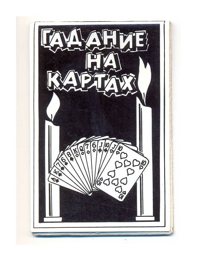 В постперестроечные времена, когда еще не было ни гаджетов, ни интернетов, а с голубых экранов лихо заряжались банки с водой, люди наши ощутили особую потребность знакомства со всякого рода мистическими сторонами нехитрого быта. И появился интересный жанр народного творчества - самиздатовские книжечки на всякого рода развлекательные темы. Представляли они из себя следующее. Это были либо сшитые нитками, либо скрепленные типографскими скрепками отпечатанные фотографическим способом листки формата примерно А6. Такой размер удобно помещался в кармане или бумажнике, листы были плотные. А значит такая брошюра была вполне себе износостойкой и могла долго нести свет знаний, изложенных в ней, любопытным читателям. Одной из таких книжечек посвящен этот пост. Книжечка - "Гадание на картах". Прекрасное руководство для организации досуга осенним вечером. А времена у нас всегда непростые - поэтому узнать, что же нас ждет впереди, всегда полезно. Весьма обстоятельное описание, согласитесь. Не менее