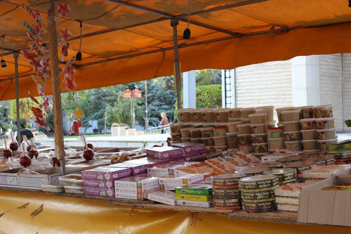 На пешеходной улице уже давно стоят вот такие прилавки со сладостями. Насколько это выгодные цены, а не в курсе, так как мы совсем не покупаем такие сладости. Но ассортимент огромный, да и сами прилавки длинные. Фото из личного архива автора.