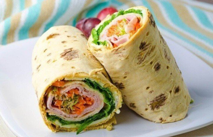 Ингредиенты: Лаваш армянский - 1-2 шт Сыр сливочный - 1 ст.л Салат - 1 лист Капуста белокочанная Морковь Помидор - 1 шт Ветчина - 2 ломтика Куриная грудка Соль и перец Приготовление: 1.Куриную грудку отварить. Понадобится совсем чуть чуть. Отрезать пару продолговатых ломтиков, и по желанию немного обжарить. 2. Капусту мелко нашинковать или натереть на терку. На крупной терке натереть морковь. Отрезать 2-3 небольших ломтика помидора, и пару пластинок ветчины. 3. Начинаем формировать ролл: Берем лаваш и смазываем его сливочным сыром. Выкладываем сверху равномерно порваные листья салата. Затем капусту, морковь, ломтики помидора, ветчину и наконец курицу. 4. Аккуратно заворачиваем и наслаждаемся. Ролл с ветчиной и сыром готовПриятного аппетита