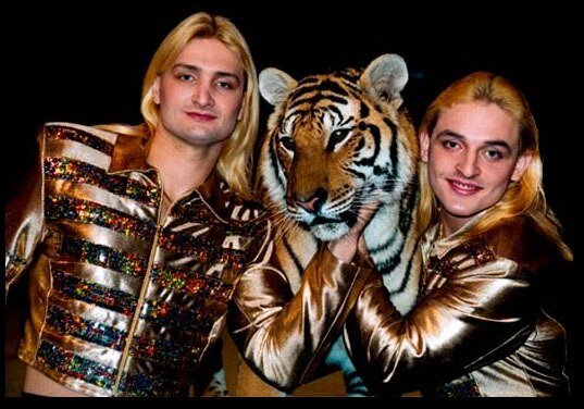 Профессия дрессировщика очень опасная. Только смелые и уверенные в себе люди смогут укоротить свирепых хищников. Аскольд и Эдгар Запашные происходят из старинного рода циркачей. Свое начало он берет с конца девятнадцатого века. Основатели рода были не только укротитель, но и гимнасты, жанглеры и др. Все свое детство братья провели в цирке. С выбором профессии вопроса не возникало. Предпочтение отдали дрессировке. Укротители это самая престижная профессия в цирке. Не каждый сможет подчинить себе дикое животное и заставить выполнять команды и делать трюки. Тигры братьев воспитываются дружелюбными. Они воспринимают Запашных как своих родителей. Со своими тиграми братья могут выполнить любой трюк. Такое впечатление что чувство страха совсем не ведьмы ребятам. Не только братья Запашные доверяют тиграм, но и у тигров полное доверие к своим хозяевам. Тигры готовы выполнить любой номер. Ну как можно не поцеловать своего любимца - тигра. Но мало кто рискнет это сделать. Между укротителем и тигр