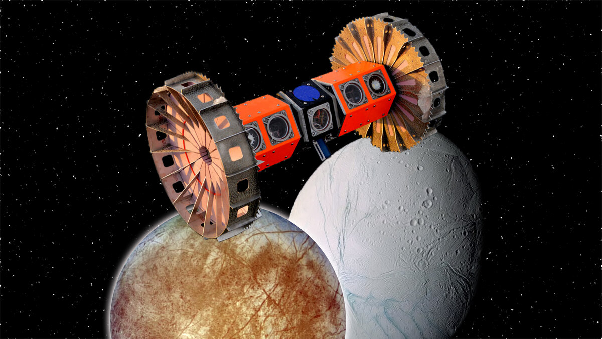 В Солнечной системе человечеству особенно интересны космические объекты, в которых присутствует значительное содержание воды. Ведь для всего живого на Земле жизнь без воды невозможна. Таким богатством, кроме Земли, обладают спутник Юпитера Европа и спутник Сатурна Энцелад. То, что в подповерхностном слое Энцелада присутствует жидкий океан, об этом говорит мощный выброс водяного пара в Южной части спутника, произошедший в 2004 году. Это событие зафиксировала Автоматическая межпланетная станция "Кассини". Водяной пар вылетел в космическое пространство на высоту в несколько сотен километров. По поводу содержания воды в Европе, опубликована отдельная статья (ссылка в конце). Плавучий планетоход Bruie Инженеры исследовательской лаборатории NASA активно испытывают Bruie. Это плавучий планетоход для подводных исследований. Аппарат выдерживает низкие температуры. Такой показатель понадобится для будущей экспедиции, где средняя температура на Европе -170 °С, на Энцеладе - 200 °С. Первый этап