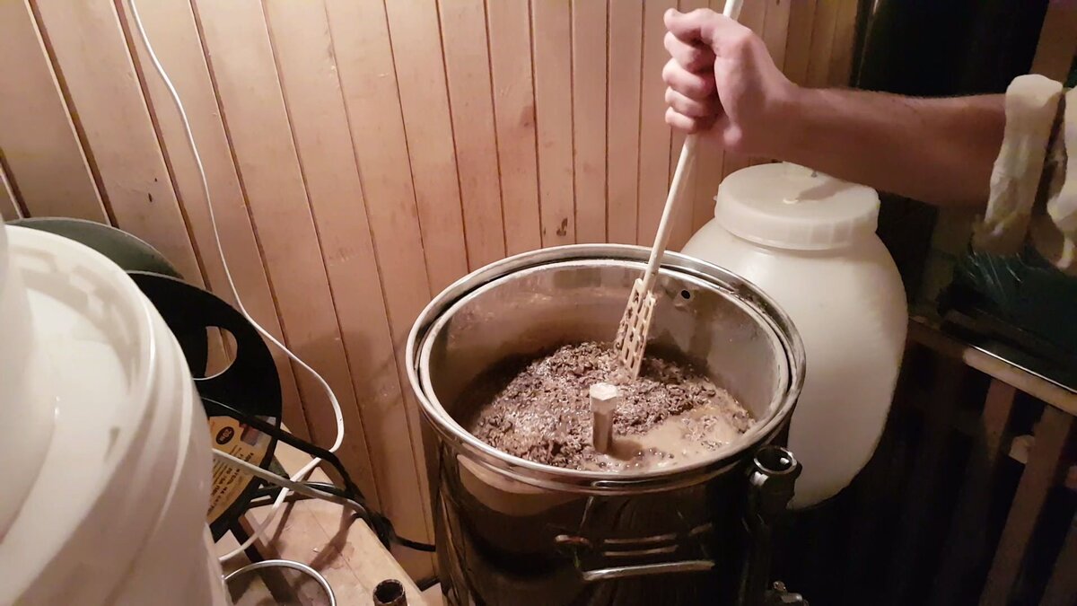 Тут еще важно для себя определить, когда удалять дробину. Под удалением или утилизацией я в своем случае понимаю высыпание дробины в пакет и вынесение пакета на временное хранение, пока за ним не приедут и не увезут на корм домашним животным. Так вот, проблема в том, что полностью осушить дробину вам не удастся – сколько бы вы не ждали, все равно будет периодически капать. Ну, если только на оставлять ее стекать на час-два. Тут надо не заморачиваться и установить для себя какой-то признак, когда хватит уже ждать, пусть этот признак и будет слабо связан с осушением дробины. Я для себя установил такой критерий: я выбрасываю дробину, когда сусло в пивоварне нагреется до 90 градусов. Опытным путем я установил, что если я еще буду ждать, то не успею все сделать до начала кипячения, а до этого надо не только дробину утилизировать, но и воду долить, хмели приготовить.