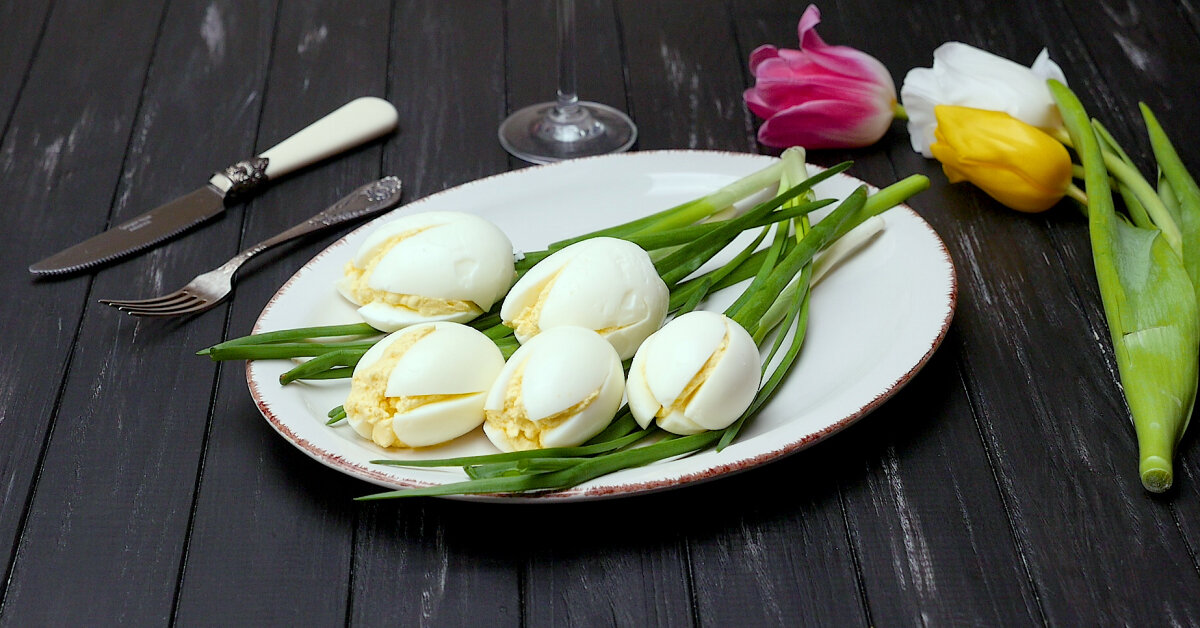 Наличие цветов на новогоднем столе не помешает. Нет, я не про букет. Я про вкусную яичную закуску, которая выглядит как белые тюльпаны...Оригинальный дизайн удивит гостей, и все разлетится в миг!