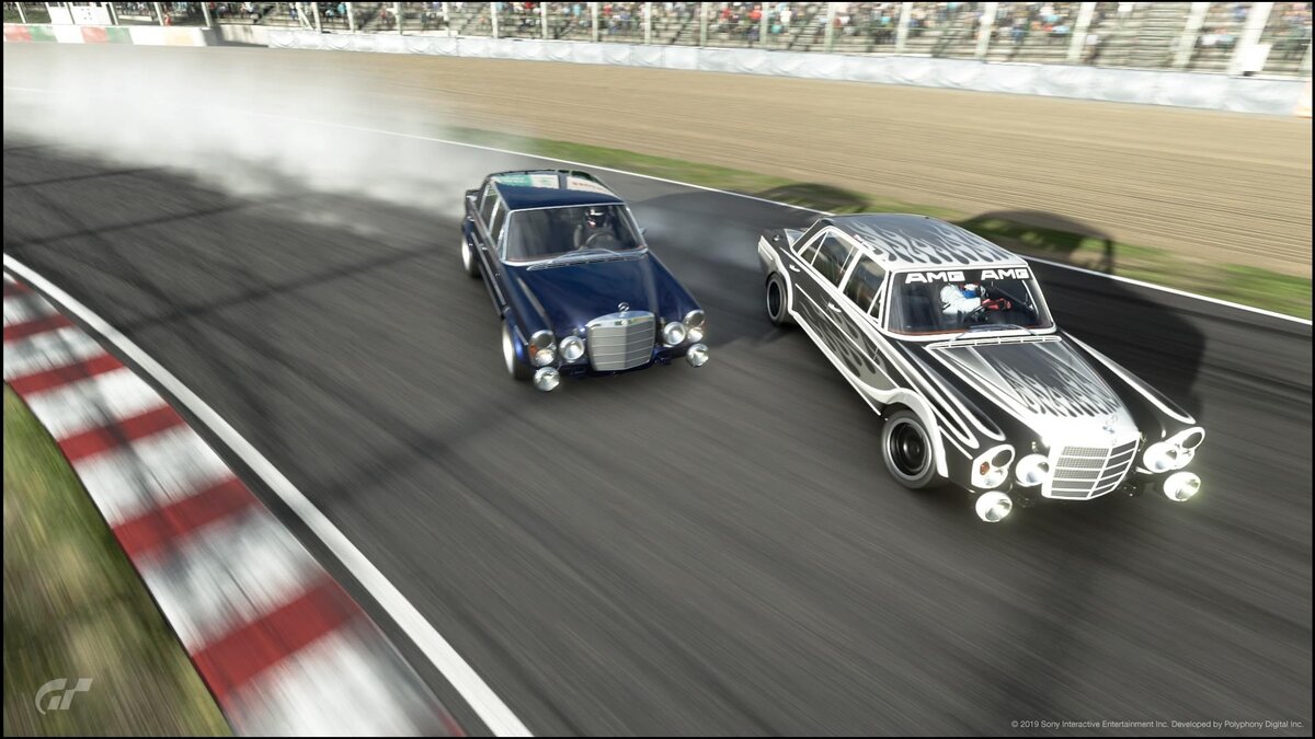 Ну и в третью очередь это конечно же специфика автомобиля Дрифтовый Mercedes-Benz 300 SEL в Gran Turismo Sport очень тяжелый, и хоть и имеет почти 7-ми литровый мотор, но не очень тяговитый, плюс ко всему он очень большой и благодаря этому валкий и вялый. Реальная такая баржа типа волги.