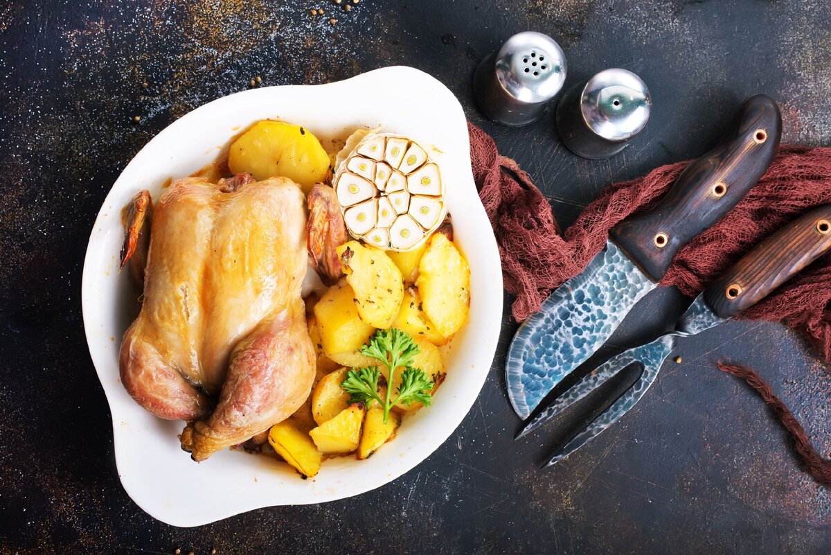Если вы устраиваете у себя дома праздник и хотите удивить гостей чем-нибудь необычным и вкусным, вам прекрасно подойдет курица с яблоками и картошкой, запеченная в духовке. Это блюдо хорошо тем, что оно не только очень вкусное, но и весьма внушительно смотрится, за счет чего сможет неплохо украсить ваш праздничный стол или даже возглавить его. Курица запеченная с яблоками и картошкой Курица, запеченная целиком - блюдо достаточно хлопотное и требующее к себе особого внимания, однако, когда вы видите его готовым, стоящим у вас на столе, и чувствуете его аромат, вы понимаете, что усилия были потрачены не напрасно. Вам понадобится: Процесс приготовления: При подаче на стол обязательно переложите картофель с курицей из противня в отдельную миску, поскольку на дне противня будет много жира и масла. Вам также может понравиться: Гороховый суп: рецепт приготовления Пышные блинчики на молоке – рецепты Самые вкусные рецепты домашнего майонеза Фисташковый торт: рецепт приготовления Нравятся наши с
