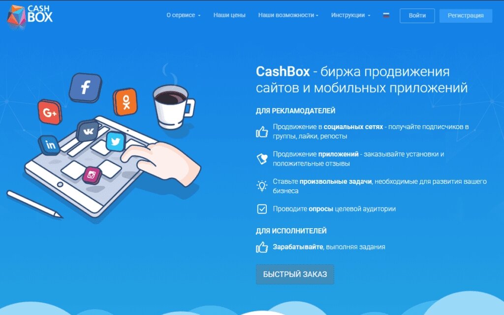 CashBox - Это биржа продвижения сайтов и реклама в социальных сетях.
