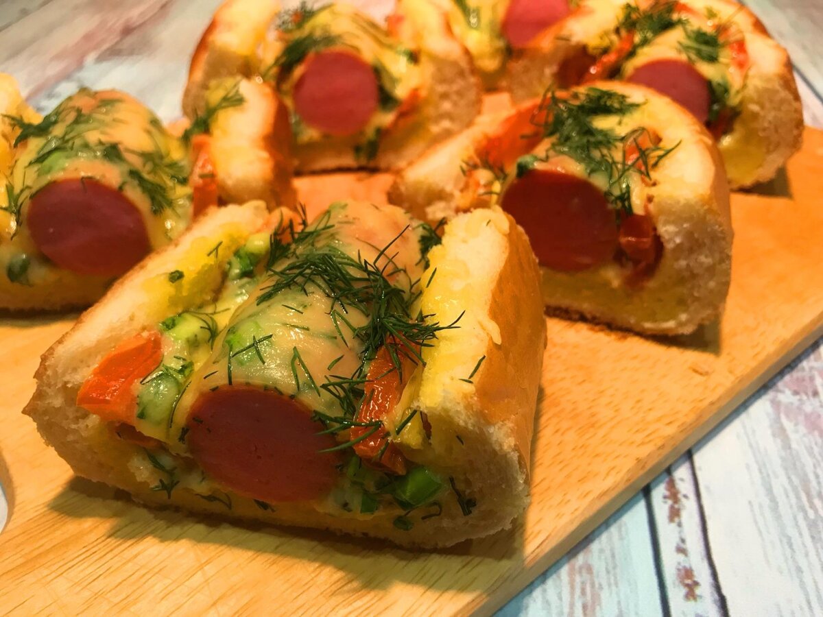 Приготовила эту закуску в выходной на завтрак - муж и дети смели все за один присест. Эта закуска прийдется по вкусу всем, особенно детям! Булочка получается очень хрустящей, начинка нежной, ну и конечно же, обожаемые детьми сосиски, куда же без них.