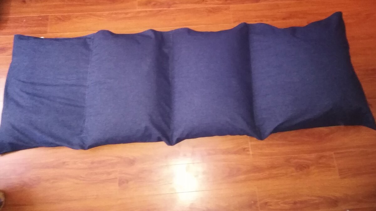 В интернете увидела идею матрасика из подушек для детей. Родилась идея сделать себе такой, но не шить специально подушки, а сложить в этот чехол лишние подушки и одеяла, имеющиеся дома. Матрасик получился мобильный. И многофункциональный. На нём удобно творить хоть сидя, хоть лёжа. На нём могут играть дети. Его легко разобрать на случай "гости приехали с ночёвкой". Или постирать чехол. Сшила его на одном дыхании (с шитьём не дружу) и вдохновении всего за час, главное иметь под рукой необходимые ингредиенты: Два метра ткани (у меня джинса ширина 150см.) Нить в цвет Швейная машина. Сложила пополам ткань лицом внутрь и кромка к кромке. Прострочила края. Вывернула на лицо. Отметила мелом размеры своих подушек и прошила по лицу. В готовые отсеки вложила свои подушки.