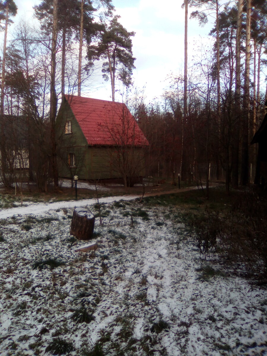 В деревянном доме тепло и уютно, топится печка, на душе хорошо и радостно. За окном идёт мокрый снег, ложится на землю и образует не большой белый коврик.