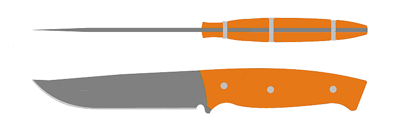 Продолжение темы "138. Своими руками. Ремонтируем рукоять ножа". Если рукоять ножа пострадала на столько, что никакой макияж ей не поможет (а такое бывает, если нож побывал в руках у моих внуков), то придется делать новую рукоять. Скорее всего, это будет рукоять с накладным монтажом и нескрытым хвостовиком. Опыт подсказывает, что у таких ножей хвостовик довольно прочный и страдают только накладки. К счастью, при сохранности хвостовика такую рукоять и восстановить не сложно. Для начала надо освободить хвостовик от остатков старых накладок. Делать это надо осторожно, стараясь не погнуть и не сломать хвостовик. Старые заклепки тоже надо удалить, возможно, их придется спилить ножовкой по металлу в непосредственной близости от хвостовика, а затем осторожно извлечь нерасклепанную часть. Высверливание старых заклепок может потребовать некоторых навыков и при отсутствии сверлильного станка лучше справиться без высверливания. Если хвостовик полноразмерный и его форма полностью совпадает с формо