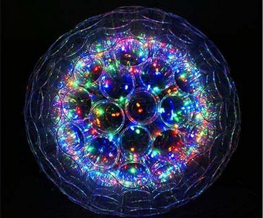 Нам понадобится: Нужно проделать отверстия по центру в донышке каждого стаканчика. Удобно использовать шуруповёрт, дрель, или просто нагретый гвоздь. Смотрите за тем, чтобы диаметр был достаточным для помещения в отверстие лампочки гирлянды. Сделав одно отверстие можно «примерить» лампочку, чтобы определить нужный размер. Возьмём 12 стаканчиков и соберём их в круг, соединяя друг с другом степлером. Далее для того, чтобы собрать шар, нам нужно прикрепить второй ряд стаканчиков. На этот раз потребуется 9 штук. Прежде чем скреплять стаканчики степлером, зафиксируйте их прищепками, чтобы убедиться, что все они поместятся. Затем скрепите их друг с другом и смежными стаканчиками из первого ряда. Последний третий ряд состоит из 3 стаканчиков. Поступаем с ними таким же образом, как с предыдущими рядами. Убедитесь, что вы закрепили стаканчики достаточно прочно! Половина светильника готова. Последний третий ряд состоит из 3 стаканчиков. Поступаем с ними таким же образом, как с предыд