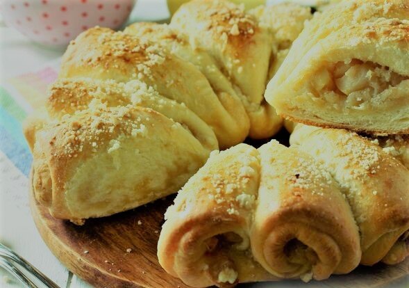 Что нам нужно: Для теста: Для штрейзеля (кондитерской крошки): Для начинки: №1 Проверяем наличие всех ингридиентов. №2 Замешиваем дрожжевое тесто. В тёплом молоке разведите сахар и соль. В глубокую миску просейте муку, всыпьте сухие дрожжи и размешайте. Сделайте в муке небольшое углубление, добавьте туда молоко, растопленное сливочное масло и яйцо. Замесите тесто. Тесто будет довольно липким. Припылите стол небольшим количеством муки, выложите липкое тесто и вымешивайте его минуты 2. Затем понемногу введите растительное масло, вымешивая около 2 минут после каждого добавления. В итоге должно получиться мягкое тесто. Отправьте тесто в миску, накройте полотенцем и оставьте в тёплом месте на 1-1,5 часа. Я это сделаю в хлебопечке. В чашу добавляю молоко, яйцо, сахар, растительное масло и растопленное сливочное масло. Размешиваю до растворения сахара. №3 Засыпаю дрожжи и просеянную муку. №4 Включаю режим замеса. Через полтора часа тесто будет готово. №5 Моем яблоки, вырезаем косточки и нар