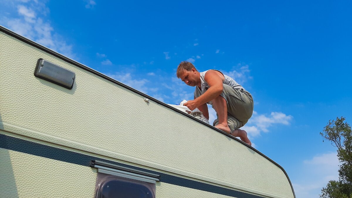 Колпачок грибка у нас сдуло ураганным ветром под Ростовом по пути в Крым. Пришла идея заменить его на дно от пятилитровой бутылки. Вот только как попасть на крышу без лестницы? Пришлось вспомнить молодость :) . Забрался из дверного проёма, опираясь ногами на мебель и плиту. По крыше лучше не ходить - проломится! Перемещался по краю - ребру стены. Был вот такой колпачок - это сохранился второй из туалета. Заодно протёр мокрым бумажным полотенцем солнечные панели, так как грязный налёт очень сильно снижает эффективность заряда. Подобрал примерно близкую по диаметру бутылку и отрезал дно. К сожалению про съёмку вспомнил только после ремонта, так что расскажу на словах. Дно вставил внутрь основания грибка, так надёжней фиксация. На герметичность не влияет, так как внутри есть ещё один выступ примерно 2 см высотой и если даже будет протекать, то внутрь не попадёт и будет вытекать, через отверстия расположенные по периметру. Через эти же отверстия будет функционировать и вентиляция. При жела