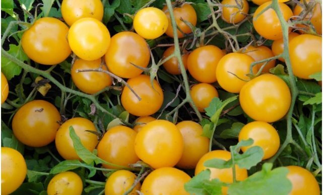По каким критериям выбирали любители выращивания томатов лучший сорт? Они обращали внимание на вкус, урожайность, простоту в уходе, устойчивость к болезням, длительность плодоношения и на лежкость. Под описанием каждого сорта мы предлагаем вам ознакомиться с их отзывами. 1. Саммер Сан (Summer Sun), или Летнее солнце Победителем нашего голосования стал урожайный сорт с красивым названием Летнее солнце – так переводится на русский язык оригинальное наименование Summer Sun (Саммер Сан). Сорт индетерминантный (некоторые производители предлагают Саммер Сан как гибрид), кусты достигают в высоту 2 м. В связи с этим требуют регулярной подвязки. Растение дает много пасынков, которые производители рекомендуют обрывать, формируя куст в 1-2 стебля. На 1 кв.м не стоит высаживать больше 3 кустов, потому что они будут мешать друг другу. Небольшие – 2,5-3 см – плоды янтарного цвета как будто просвечиваются насквозь. Благодаря высокому содержанию сахара, обладают очень сладким вкусом. Несмот