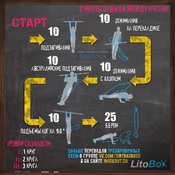 Используйте их не как прямое руководство к действию, а как "пищу для ума" для новых идей в своих тренировках. Вы вольны сами менять количество повторений и подходов, а данная схема служит лишь визуализацией комплекса упражнений. Больше схем и программ тренировок в вк-паблике:vk.com/swtbarboss
