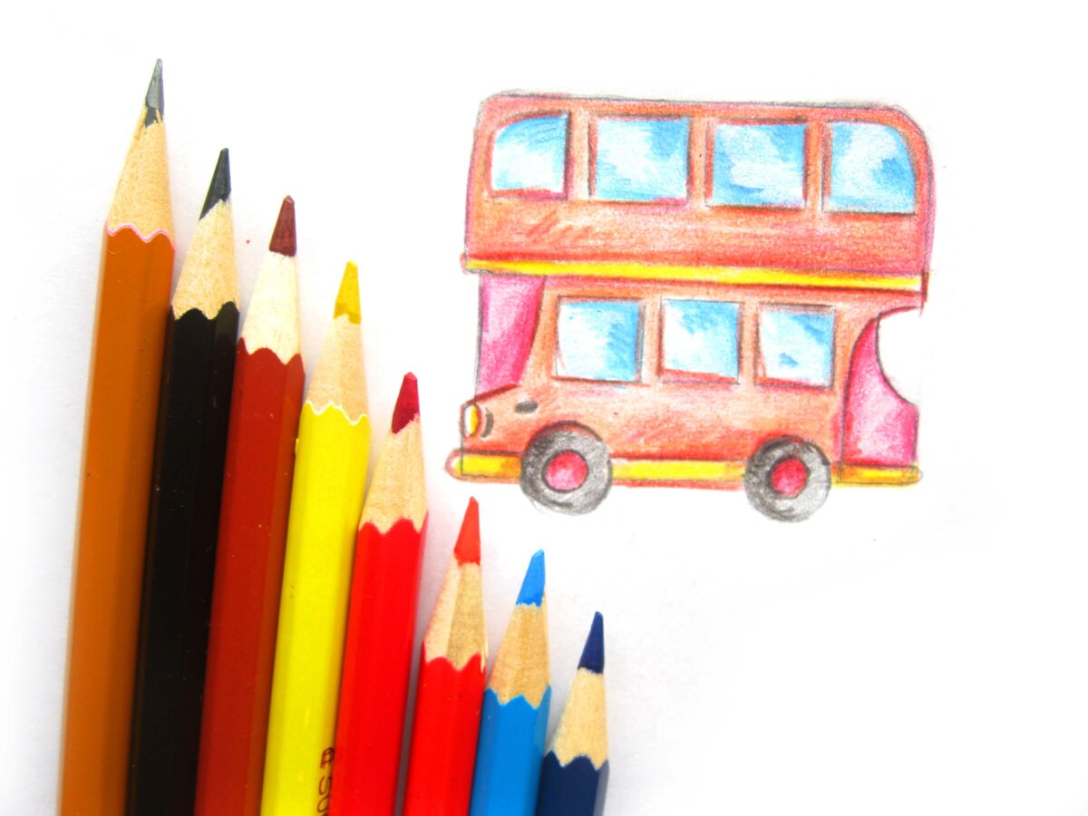 7. Основную часть лондонского автобуса раскрасим красным карандашом.