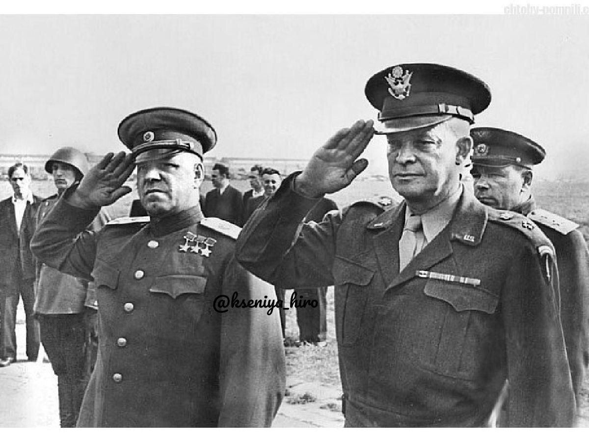 Эйзенхауэр и Жуков были назначены командующими 👨✈👨✈оккупационными войсками своих стран в Германии и членами Союзного Контрольного Совета. Наглядно видно насколько различаются у них руки 🖐🏻✋ У маршала Жукова квадратная ладонь и короткие пальцы, а у генерала Эйзенхауэра прямоугольная ладонь с длинными пальцами. 🇷🇺 Жуков больше практичный по натуре, выносливый, прямолинейный и не боится высказать своего мнения, на такого человека можно положиться, его трудно вывести из себя, но если начнет бушевать, его гнев будет в тысячи раз ужаснее чем можно себе представить, дисциплина всегда на первом месте, любит делать все по своему, очень настойчивый и всегда идет напролом, когда это необходимо. Про Жукова все ясно и понятно, каким его все знают, то и отражено на его руке. Но несмотря на все сильные качества, в душе такие люди очень наивные, очень простые и поэтому их легко обмануть и втереться им в доверие. 🇺🇸 А вот Эйзенхауэр это человек-маска, его внешнее представление полностью не