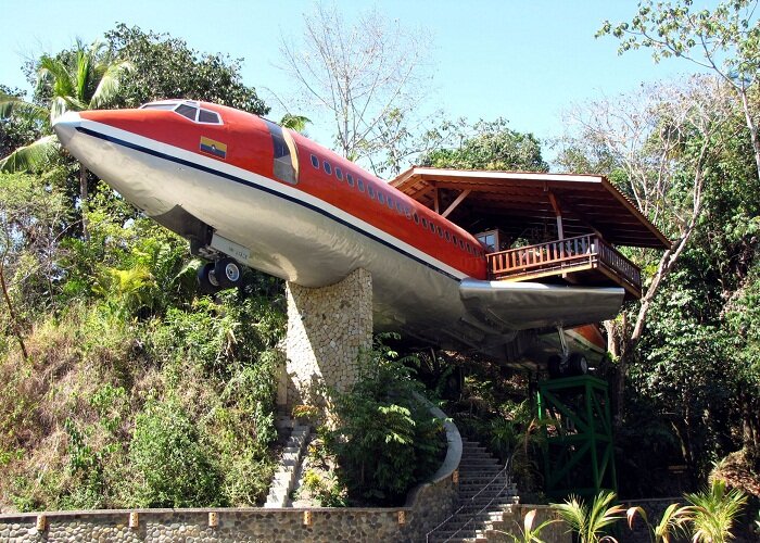 В Коста-Рике есть идеальное место для любителей авиации и нетривиального отдыха – это отель, созданный в самом настоящем самолете Боинг 727. Не столько летательный аппарат вызывает удивление и восторг, сколько тот факт, что он расположен на 16-метровой каменной опоре в живописном национальном парке Мануэль Антонио, с невероятным видом на Тихий океан и экзотическими животными по соседству. Боинг 727 превратили в президентский люкс (Hotel Costa Verde, Коста-Рика). | Фото: travel-news-photos-stories.com. Очень интересная идея пришла в голову владельцам сети отелей Costa Verde – они решили сделать неординарный гостиничный номер для любителей всего экзотического и необычного. Для этой цели был куплен самый что ни на есть настоящий Боинг 727, который после 40 лет службы был списан и находился на стоянке для отслуживших авиалайнеров в международном аэропорту Сан-Хосе. Чтобы доставить воздушный корабль на территорию национального парка Мануэль Антонио, что в 170 км от аэропорта, его пришлось