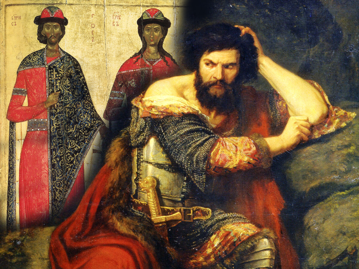 Не предвещало доброты уже рождение мальчика: мать его была монахиней, её красотою прельстился старший брат Владимира Ярополк. Увёл из монастыря и женился на ней. Владимир поступил ещё хуже: убил Ярополка и взял его красивую жену, а когда народился Святополк — сын брата убитого, — признал его своим сыном, но не полюбил, как родного. Редко что доброе вырастает из нелюбимого дитяти. Это как яблоню в глубокой тени посадить — когда она зацветёт? Да и зацветёт ли? В час, когда преставился князь Владимир, в Киеве на отчий престол воссел Святополк, вошедший в историю под именем "Окаянный". Занял Святополк Киевский золотой стол беззаконно и хотел своих братьев-соперников убить. Позвал Святополка своих слуг — Путьшу, Тальца, Еловца и Ляшко — и велел им убить своего брата Бориса. Безжалостно убили Бориса посланцы Святополка. Произошло это 24 июля 1015 года. Вслед за Борисом по приказу Святополка 5 сентября того же года был убит Глеб. В 1016 году Ярослав разгромил под Любечем войско Святополка и