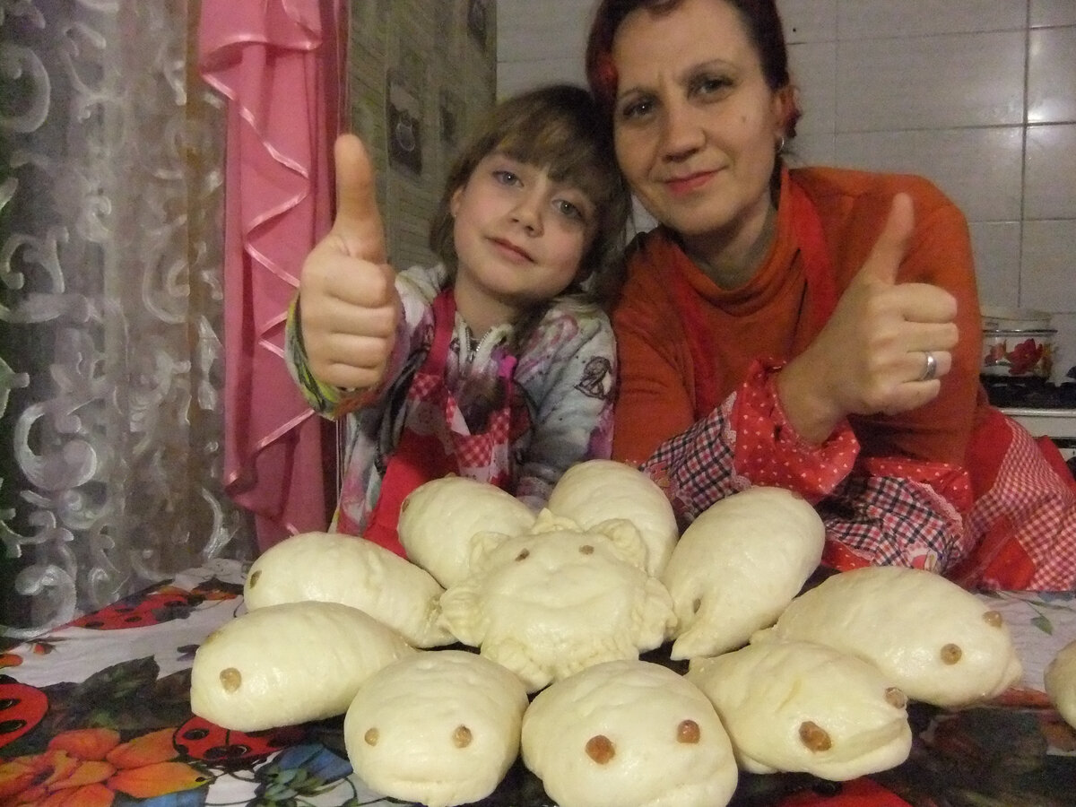 1) Молоко - 500 мл. 2) Дрожжи - 50 гр. 3) Соль - щепотку 4) Сахар - 2ст.л. 5) Растительное масло - 2 ст.л. 6) Сода - 1 ч.л. 7) Мука - 800 гр. Для начинки. 1) Творог - 1 кг. 2) Изюм - 150 гр. 3) Сахар по вкусу Варить на пару 6-7 минут