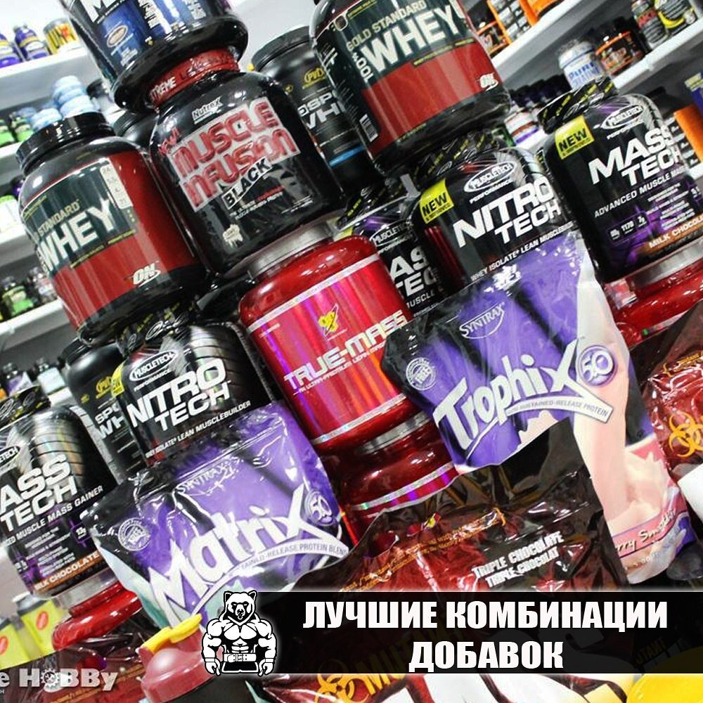 • ДО ТРЕНИРОВКИ: сывороточный протеин, аргинин, кофеин, креатин, глютамин, ВСАА, глицин. • ПОСЛЕ ТРЕНИРОВКИ: гейнер, протеин (сывороточный), лейцин, креатин, ВСАА, витарго, альфа-липоевая кислота. • МЫШЕЧНАЯ МАССА: гейнер, протеин, креатин, ВСАА, лейцин, трибулус, экдистерон. • СИЛА: креатин, карнозин, таурин, трибулус, октаконазол, экдистерон. • ДРАЙВ: DMAE, фенилаланин, винпоцетин, гиперзин. • СУСТАВЫ: глюкозамин, хондроитин, MSM, куркумин, рыбий жир, витамин С. • БОРЬБА С ЖИРОМ: Подробнее можно прочитать на сайте http://bodymass59.ru/luchshie-kombinacii-dobavok/