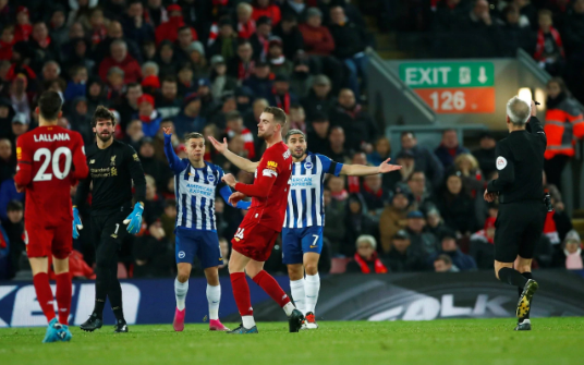 Ливерпульский вратарь Алиссон был удален за явный гандбол за пределами своей штрафной площади, красные оторвались на 11 очков от Манчестер Сити после победы над Брайтоном. Команда Юргена Клоппа готовилась к победе после того, как два гола забил Вирджил ван Дейк в течение шести минут первой половины. Заменивший Адриан первым первым делом забрал мяч из своей сетки после того, как исполнил штрафной Льюис Данк, оставил вратаря в дураках - который все еще устанавливал стенку. Итог 2:1 трудная победа Ливерпуля. Вот что сказал Юрген Клопп: Конечно, в конце игры не было необходимости нервничать, потому что у нас были невероятные шансы. Их вратарь неплохо спасал. Это была сложная игра, потому что Брайтон - хорошая футбольная команда. У них было много владения, и нам пришлось очень внимательно играть. Мне понравилось, что игроки были готовы сделать это после напряженной недели. Ранее в тот же день действующие чемпионы « Манчестер Сити» провели ничью 2: 2 в «Ньюкасл Юнайтед». Лестер Сити сокра