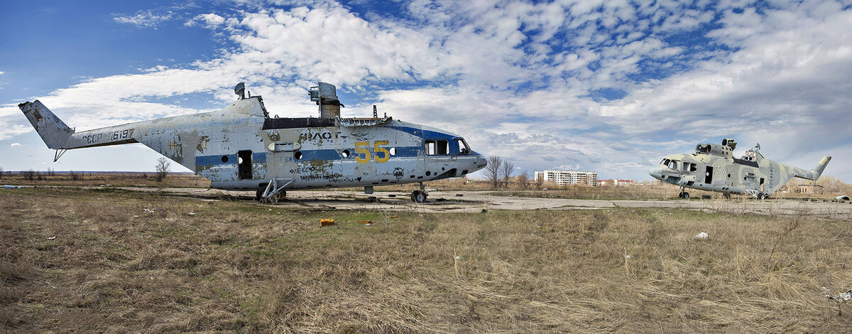 О 793-м транспортно-боевом вертолетном полке я знал давно и часто натыкался на фото в интернете. Но, учитывая тот факт, что он давно расформирован и все вытекающие отсюда последствия, не видел смысла туда ехать. Но летом 2017 года, пролетая на Цесне в Самару, мы отчетливо видели, что от всего былого величия осталось как минимум два не очень живых гиганта, точнее сказать их скелеты. Ввиду этой полученной информации было принято решение, что пока хоть что-то еще осталось заехать посмотреть..... в 2018 году так сложилось, что мне пришлось ехать в Саратов через Самару и я, конечно же, выбрал маршрут через Кинель-Черкассы — село и административный центр Кинель-Черкасского района Самарской области в 110 км восточнее Самары на реке Большой Кинель. Как оказалось прибыв на место, никаких проблем с проникновением на территорию не будет. Т.к. и территории полка как таковой то у же нет, просто голое поле с остатками забора и два железных скелета. 93-й Транспортно-Боевой Вертолетный Полк сфор