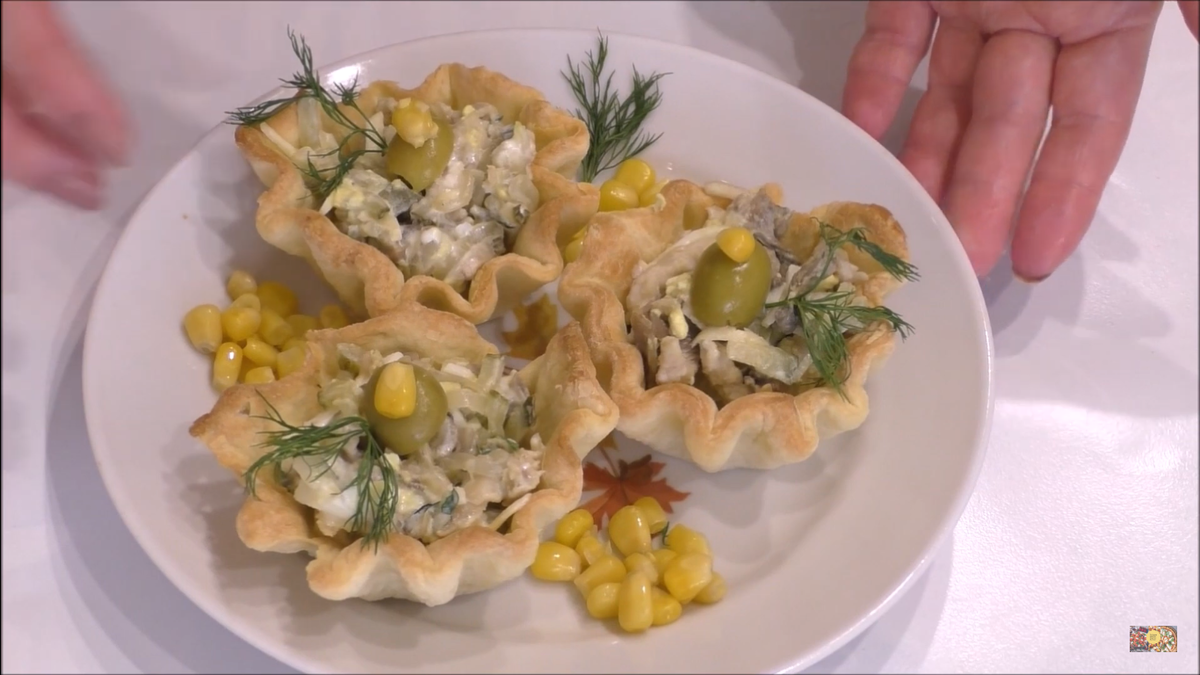 Тарталетки с мясным салатом
