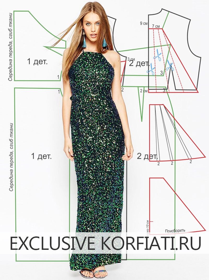 В преддверии большого торжества каждая женщина очень тщательно продумывает свой наряд, прическу, аксессуары и другие важные мелочи, которые позволяют создать настроение не только ей, но и всем гостям праздника. И поскольку приближается самый волшебный из праздников – Новый год, предлагаем вам предстать на его встрече во всей красе и примерить на себя звездный образ! Наш выбор пал на длинное прямое платье в пол из ткани с пайетками благородного изумрудно-черного цвета. Простой силуэт подчеркивает богатство ткани, тонкие бретели — линию плеч, а двойная спинка добавляет тот дизайнерский шик, который делает платье особенным. Платье полностью посажено на подкладку, по спинке – потайная молния. Перед тем как сшить это прямое платье, необходимо построить и смоделировать выкройку. Для этого используйте выкройку-основу платья, построенную по вашим меркам. Силуэт прилегающий, прибавка на свободу облегания к обхвату груди – не более 3 см. Читать материал на сайте - https://korfiati.ru/2015/11/