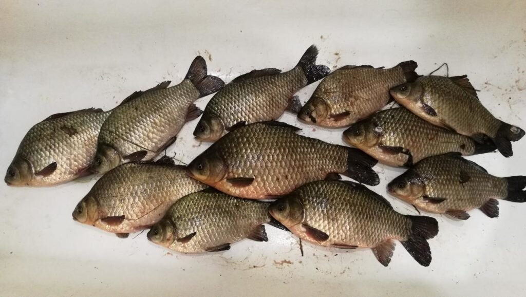 Серебрянный карась, массовый и сравнительно недавний обитатель наших водоемов. Встречается он практически повсюду, от крупных рек и до малых промерзающих водоемов где порою никто больше не выживает. Серебряный карась нереститься порционально, т.е. несколько раз за сезон, зимой зачастую активен, образует гиногенетические популяции наряду с обычными ( популяции состоящие почти целиком из самок, использующие самцов близкородственных видов не для оплодотворения, а только для стимуляции развития икры). Есть одна особенность у него, которую наблюдал не раз в средних прудах. Заключается она в том, что в жаркие летнии дни данный карась способен закапываться в ил и очень часто недалеко от источника прохлады( ключ, ручей и т.п.). Был однажды случай. Выезжали когда то на пруд с целью порыбачить двое суток. В первые сутки ( днем и ночью) наловили много мелочи плотвы, окуня и карася ( ладошечников), но толи не уследили, то ли по иной причине, большая часть улова протухла. И тут решили рискнуть, зна