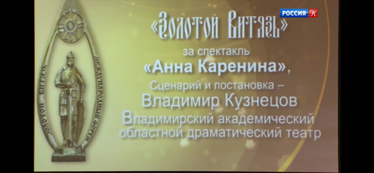 В Москве прошла церемония закрытия годовой программы X Международного Славянского форума искусств «Золотой витязь» и награждение лауреатов театрального форума. Главный приз получил Владимирский академический театр драмы за спектакль «Анна Каренина» в постановке Владимира Кузнецова. ГТРК "Владимир" поздравляет Владимирский Академический с «Золотым Витязем» https://tvkultura.ru/article/show/article_id/353210/