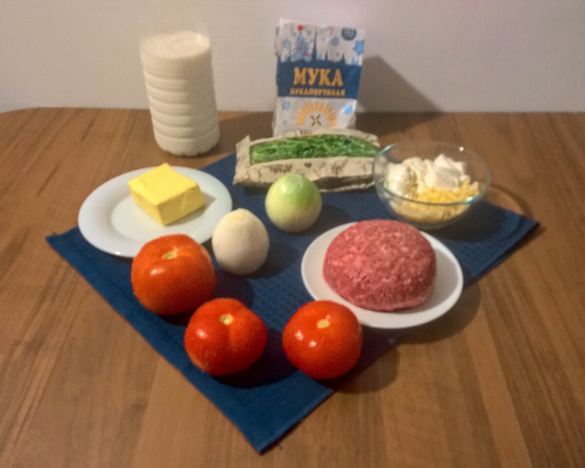 - Все ингредиенты готовы, осталось все собрать. Выкладываем первый лист теста, на него фарш с овощами и сверху нежный соус. Повторяем до тех пор, пока не заполните противень.