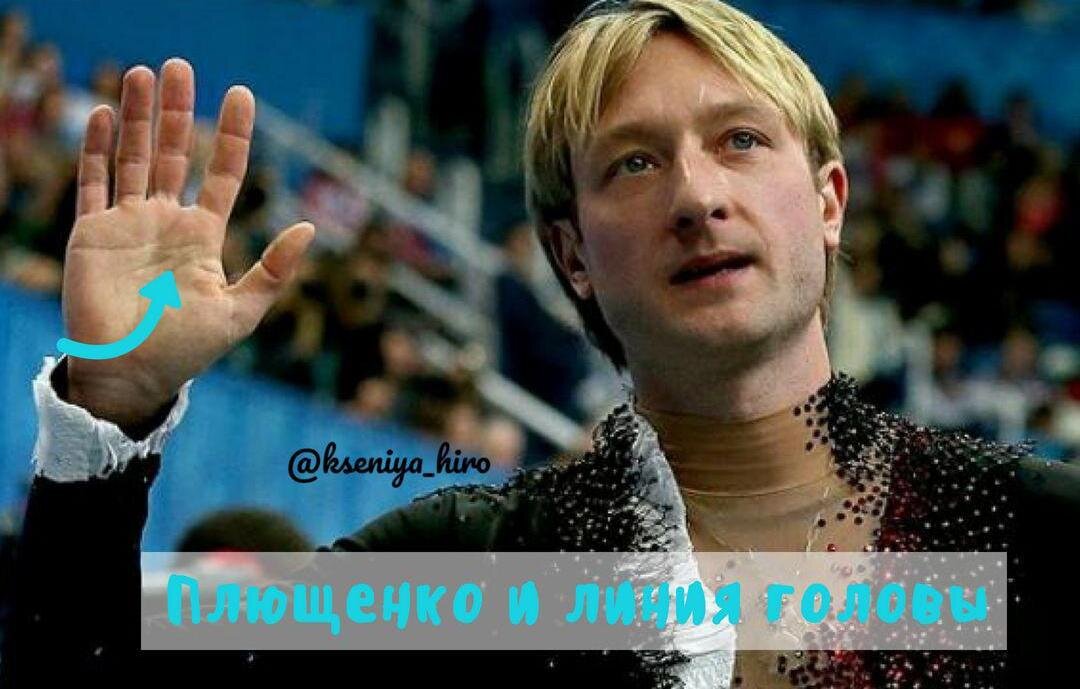 👇Обратите внимание на линию головы Евгения Плющенко, видно, что линия имеет нарушение в виде разрыва. Данный разрыв указывает на возникновение проблем в профессиональной и общественной жизни, которые отразятся на его нервной системе и умственной деятельности. В возрасте около 28лет у Плющенко происходит кардинальная смена мировоззрения и жизненных целей. 🔎Если обратиться к тому времени, что происходило в жизни Плющенко, то становится понятно, что же так сильно повлияло на разрыв. 👉В 2010 году Плющенко отказался от участия в Чемпионате мира в Турине по показаниям врачей. Международный союз заявил, что ему нужно время для оценки медицинских документов, в течение которого ему нельзя принимать участие даже в показательных выступлениях, но Евгений нарушил правила и получил дисквалификацию от Международного союза конькобежцев (ISU) и лишение любительского статуса спортсмена 🆘 Безусловно, это могло не самым лучшим образом отразиться на карьере Плющенко, который завоевал столько побед в ф