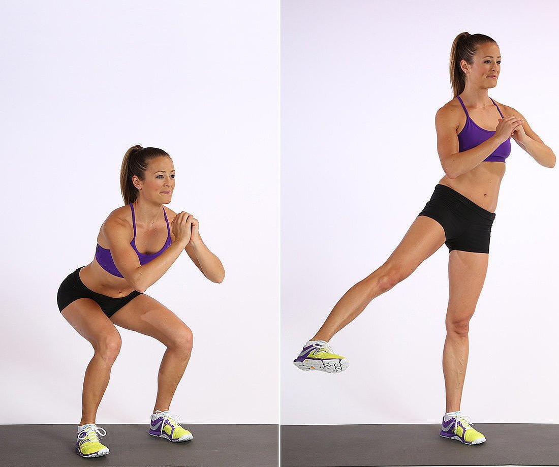 Ваши ножки будут прекрасно выглядеть в любое время года,выполняйте комплекс упражнений 3 раза в неделю и смело носите и платья,юбки и джинсы. Встаньте прямо,ноги поставьте чуть шире плеч и слегка согните в коленях,руки перед собой,взгляд вперед,немного наклонитесь,спину прогните в пояснице,глубоко вдохните и присядьте,на выдохе поднимитесь,сделав энергичный мах ногой в сторону, повторяйте упражнение по 15 раз на каждую ногу. Поставьте ноги шире плеч,носки разверните на 45 градусов,спина прямая,пресс напрягите,ноги должны быть согнуты,следите,чтобы колени были направлены в стороны носков.Встаньте на носочки и задержитесь в таком положении,спустя несколько секунд плавно опуститесь в исходную позицию,не прогибайте спину, напрягите пресс и подтяните от вас и немного вперед.Сожмите ягодицы и вытолкните ими себя вверх.Повторите упражнение 20 раз. Исходное положение,ноги на ширине плеч,носки чуть развернуты,пресс напряжён,делая вдох опустите таз чуть ниже уровня колен, задержитесь в таком