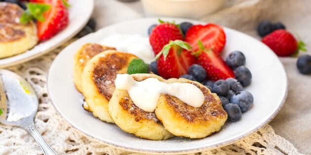 Хороший вариант на завтрак. Легко готовится. Подавать можно с вареньем, сметаной, медом и ягодами. Ингредиенты · 400 гр. творога · 2 яйца · 50 гр. сахара · 2 ч. л. ванильного сахара · 100 гр. муки (плюс 2–3 ст. л. для панировки) · растительное масло Творог растереть с сахаром и ванильным сахаром. Добавить яйца, перемешать. Добавить муку, перемешать. Из теста сформировать не большие лепешки и обвалять в муке. Жарить на среднем огне до золотистого цвета. Все! Приятного аппетита!