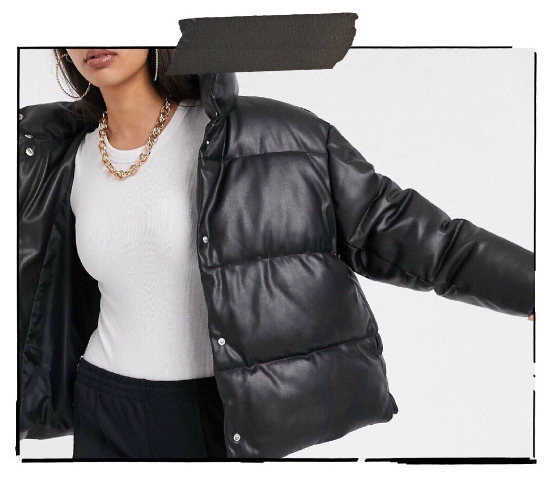 Кожа продолжает занимать первый строчки хит-парада трендов холодного сезона. Поэтому неудивительно, что кожаные пуховики остаются в моде уже второй год. С тех пор, как такие отшил бренд Nanushka, они успели перекочевать и в отечественный мидл сегмент (похожие куртки есть у бренда Ligio), и в мировой масс-маркет. Этот пуховик от ASOS - самое демократичное решение, которое я нашла.