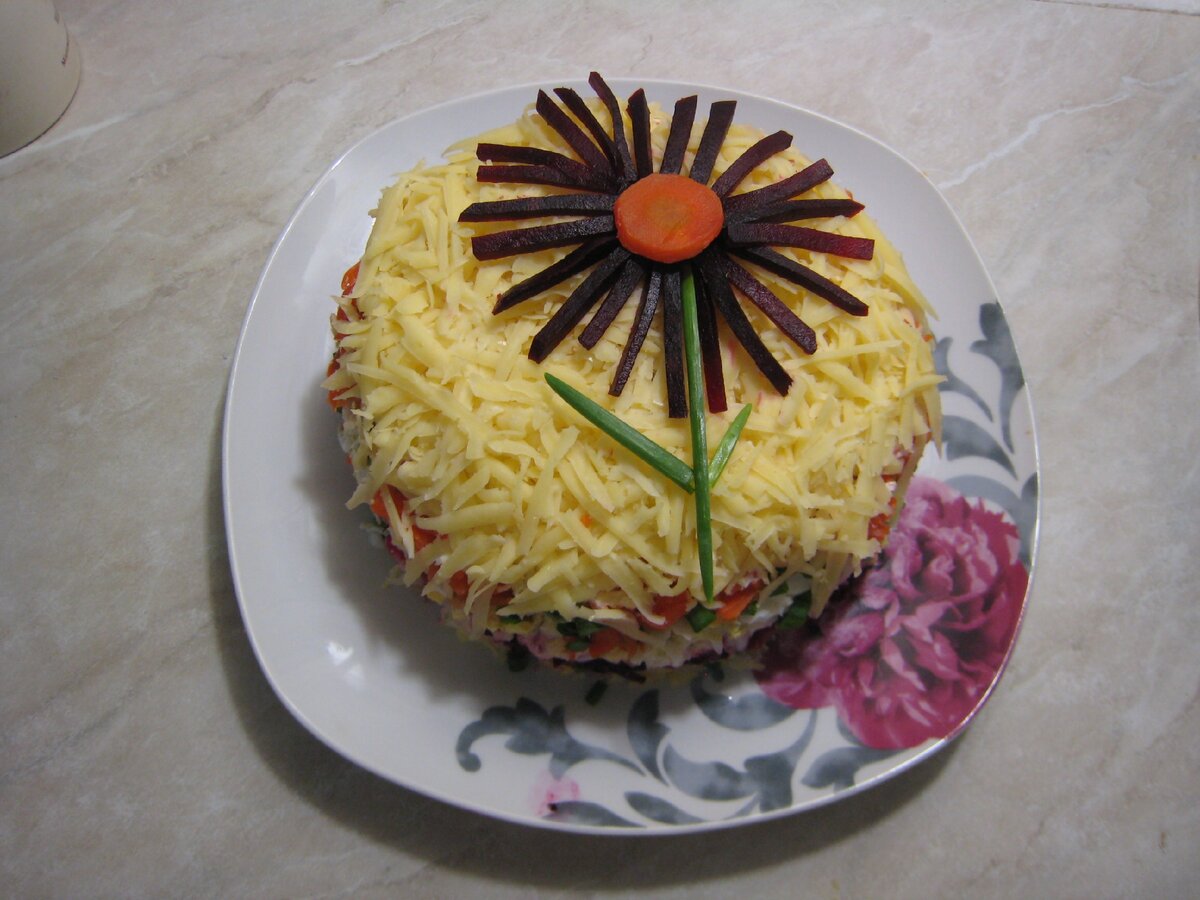 Закусочный салат "Под сметанкой". Простой пошаговый рецепт с фото.