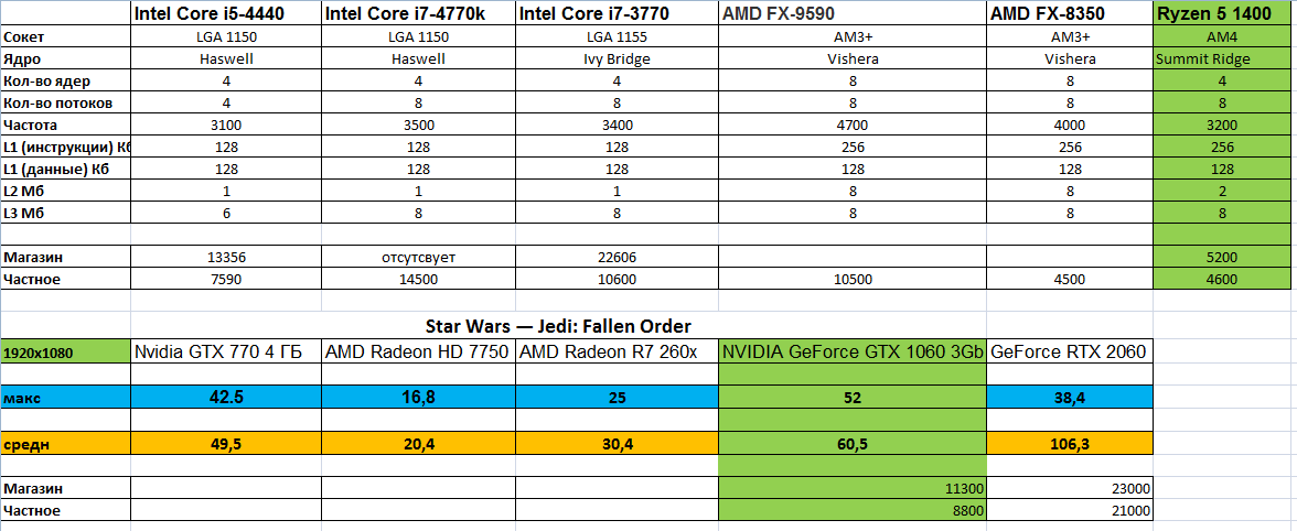 Все игры смотреть смысла нет - и так понятно. Теперь определим минимальные параметры нашей сборки. Немного посидел, вспомнил Excel и для удобства свел в таблицу. Глянем как это все выглядит:
