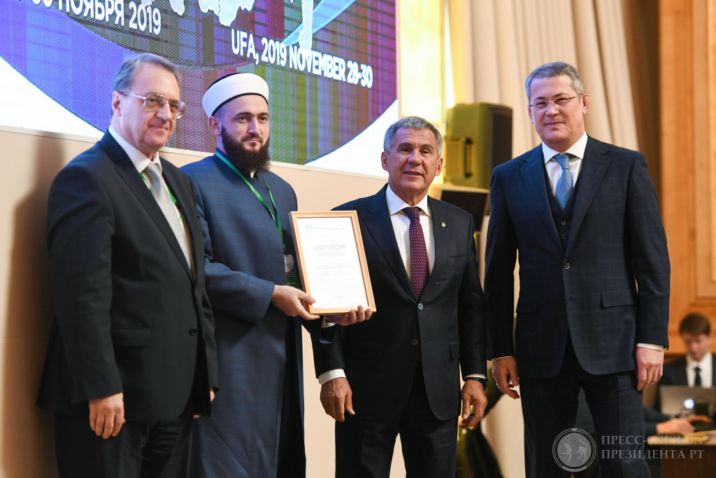 Сегодня на V Заседании Группы стратегического видения Президент Республики Татарстан и председатель Группы Рустам Минниханов вручил национальную премию «Россия – Исламский мир» Духовным управлениям мусульман России и Татарстана.