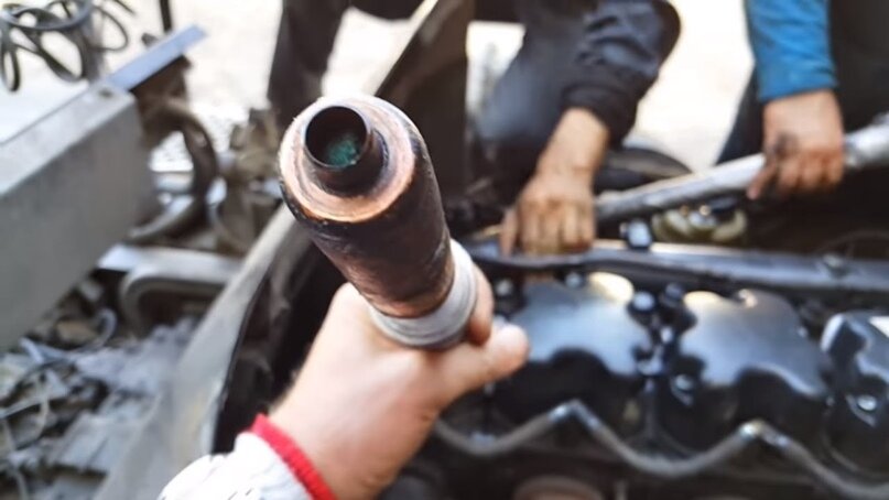 Это самая серьезная, затратная и сложная в разрешении проблема. Если автомобиль перегревается, в расширительном бачке появляется пена, есть проблемы в работе отопителя, а из выхлопной трубы идет белый дым – это с большой долей вероятности именно утечка антифриза в цилиндры. Притом на практике могут присутствовать не все вышеперечисленные симптомы. Еще два признака утечки антифриза в мотор – это белый налет на свечах зажигания и беловатая эмульсия на масляном щупе двигателя. В числе причин проблемы – пробой прокладки головки блока цилиндров (ГБЦ), коробление самой головки блока, трещина в ней или же ее сильная коррозия.