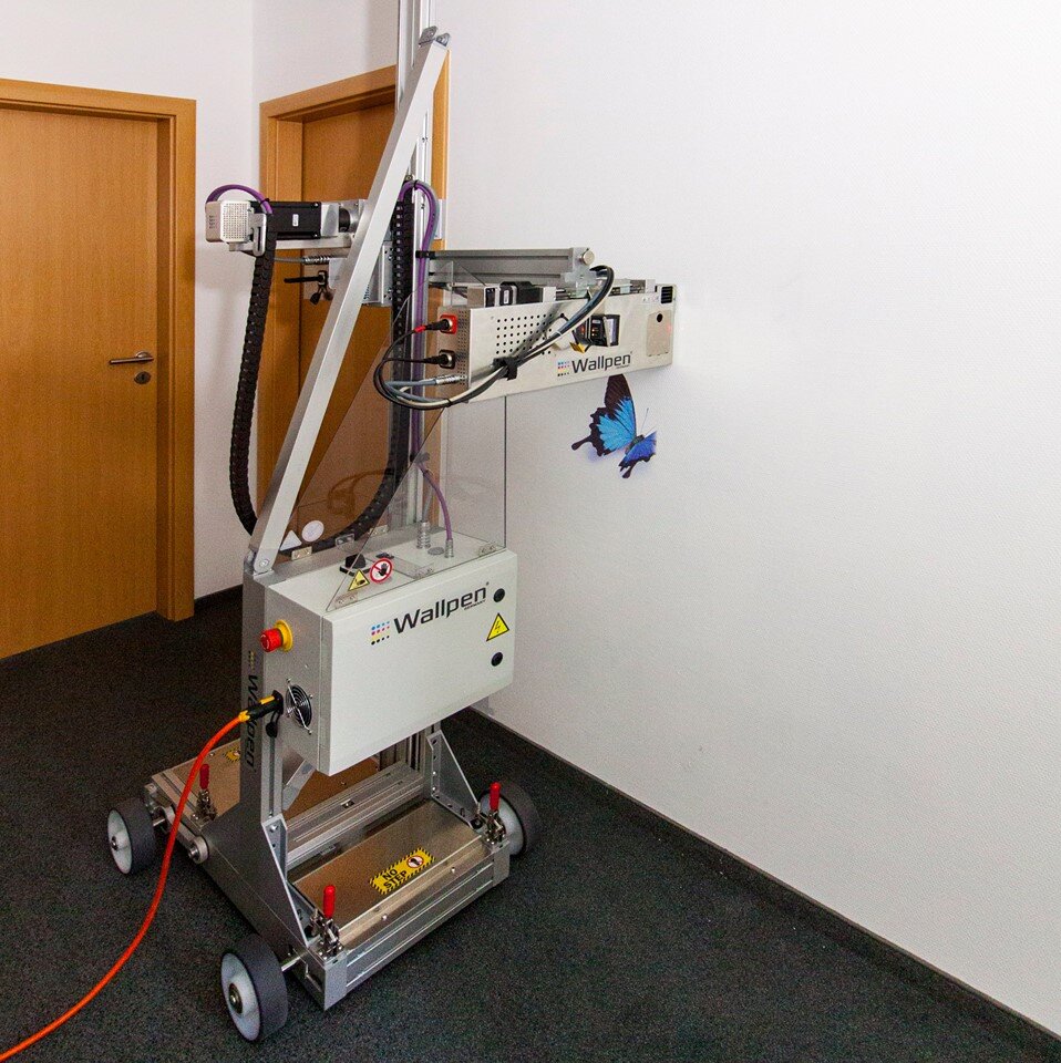 Представьте мир, в котором нет серых, давящих стен, мир полный красок. Компания WallPen представила на рынок инновационный принтер для печати на вертикальных поверхностях снаружи и внутри помещения. На разработку принтера компания потратила два года. Теперь любимое изображение стало возможным перенести на стену просто и быстро. Принтер может печатать на таких поверхностях как металл, пластик, стекло, обои, дерево, камень, керамическая плитка и бетон. Используется технология печати ультрафиолетовыми чернилами, которые безвредны для человека и делает краску устойчивой к внешним факторам таким как вода, трение, выцветание. Чернила застывают за доли секунды. Перед началом работы система сканирует лазером поверхность для выявления ее дефектов и неровностей и автоматически подстраивается под них. Управление принтера происходит дистанционно с помощью планшета. Принтер состоит из шести модулей и собирается в течении 10 минут. Скорость работы принтера составляет от 1 до
